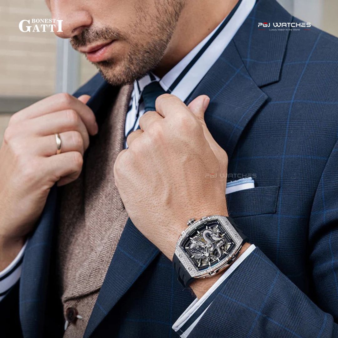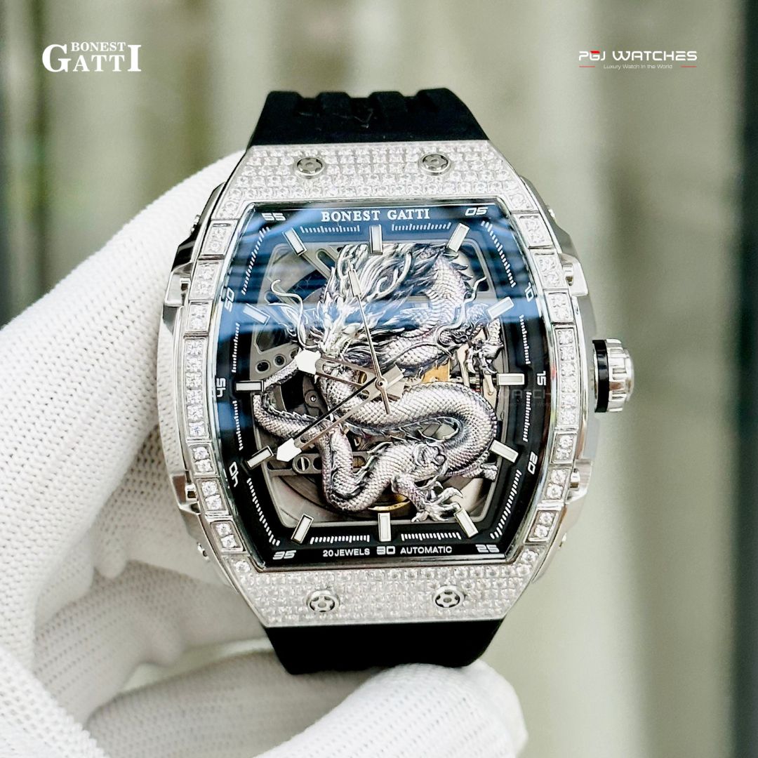 BONEST GATTI Barrel Dragon 184 zircon Bezel Automatic Mechanical Watch Luminous - BG5605