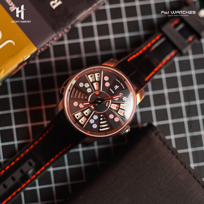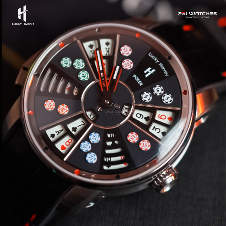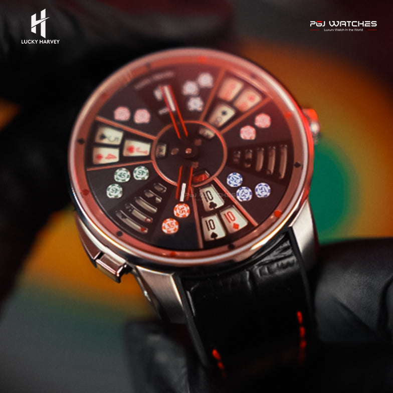 LUCKY HARVEY New Three Card Poker Men’s Watch Automatic Skeleton Poker-Motif