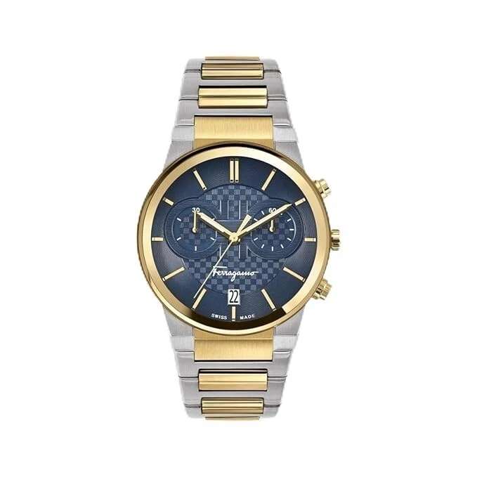 SALVATORE FERRAGAMO Chrono Blue Dial Silver Gold Steel Two Tone Strap Watch - SFME00521