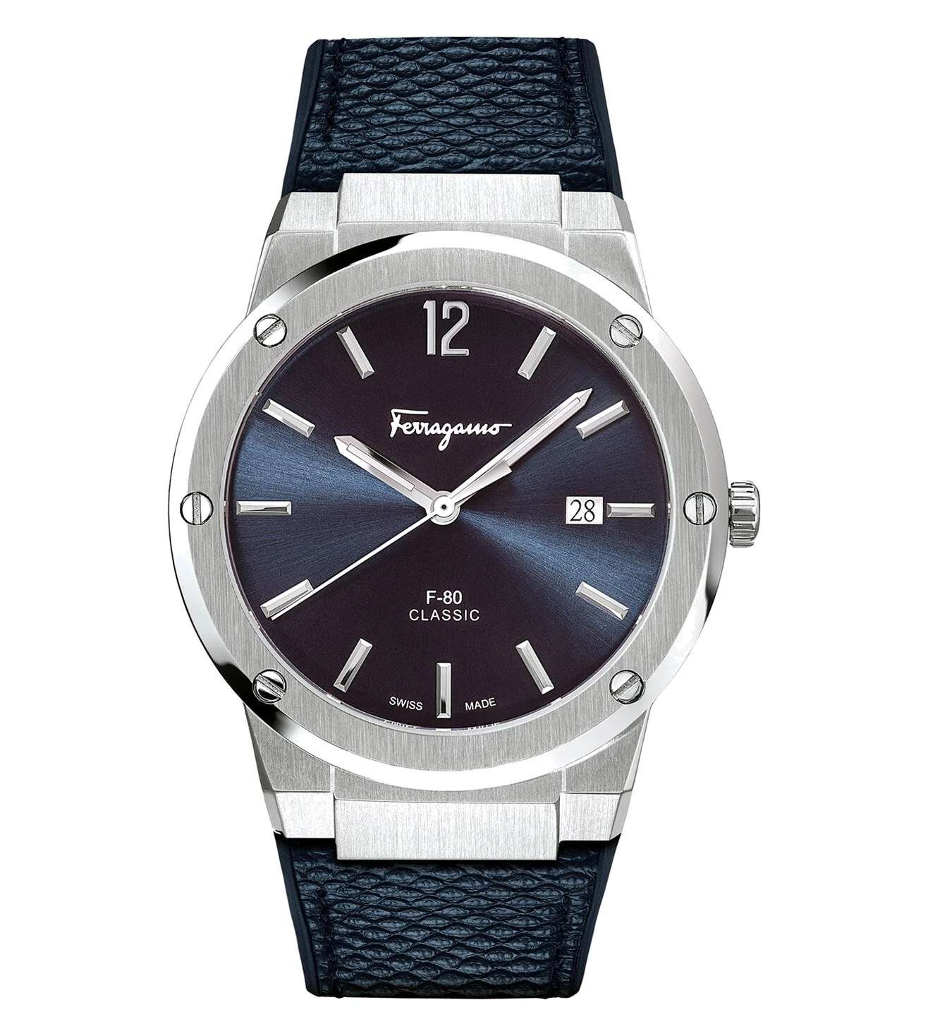 SALVATORE FERRAGAMO F-80 Quartz Classic Blue Dial Snake Leather Strap Watch - SFDT00719