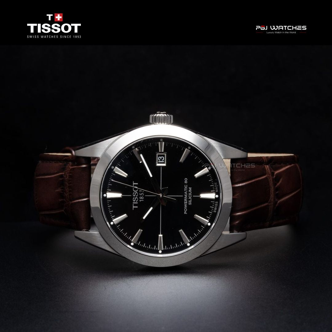 TISSOT T-Classic Gentleman Men Black Dial Brown Leather Strap - T127.407.16.051.01